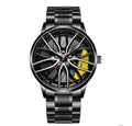 Car Wheel Watch, Stainless Steel Mens Wristwatch with Spinning Car Rim Hub Design